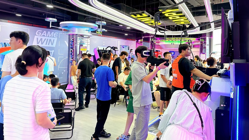 其中,二樓打造的“動(dòng)感競技場(chǎng)”,可讓消費(fèi)者體驗(yàn)保齡球精準(zhǔn)碰撞的樂趣,在“槍王對(duì)決”和“實(shí)彈射擊”中感受腎上腺素飆升,挑戰(zhàn)“滑索”的速度與“射箭”的專注,暢玩Switch2/PS5主機(jī)游戲,或在“炫動(dòng)單車”“金剛戰(zhàn)士”“巔峰狙擊”中釋放活力,更可在“落日休憩區(qū)”憑欄觀海,動(dòng)靜皆宜;三樓打造了“科技社交匯”,讓消費(fèi)者步入VR館即可開啟奇幻冒險(xiǎn),通過“宇宙一號(hào)”“傘途”“雙人360”“樂享滑雪”等7大尖端設(shè)備穿梭虛實(shí)之境。同時(shí),“聲控派對(duì)”“開放式舞臺(tái)”點(diǎn)燃社交熱情,桌游、麻將、碰碰車、臺(tái)球、飛鏢、模擬網(wǎng)球、“悅動(dòng)格子”“360°單車”等豐富選擇滿足不同興趣群體,更有私密“轟趴房”和舒適“太空艙”提供專屬聚會(huì)與休憩空間。